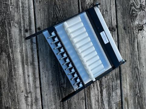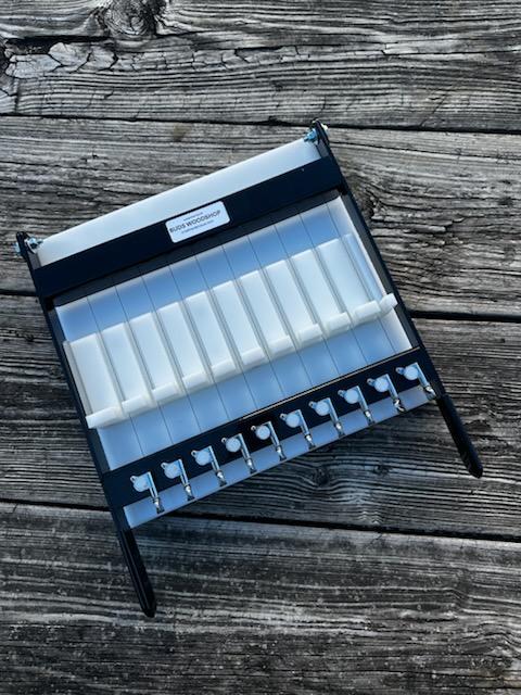 This is a handmade metal and high-density polyethylene soap cutter made in my shop. It will cut a loaf of soap 5" wide by 5" tall by any length. Choose from twelve single 1" bars, eleven single 1 1/8" bars, or ten single 1 1/4" bars. The cutter will cut only one size bar. All metal is finished with a durable powder coated black finish. Cutters are made to order. The .022" steel wire makes clean cuts every time. Wire tension is adjustable by turning a knob. No special tools are needed. This cutter is for cutting cold and hot processed soap that is not fully cured. Cutter will not cut melt and pour soap. The measurements of the cutter are 14” x 16. One extra wire is included should a wire break. All sales are final. Cutters are not stocked. Expect shipment to be made within 7-10 days after your order is placed.